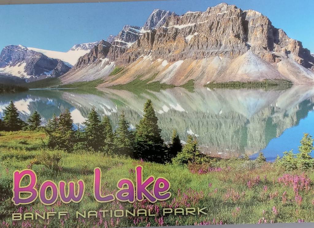 Crowfoot Mountain reflects in the still waters of Bow Lake.