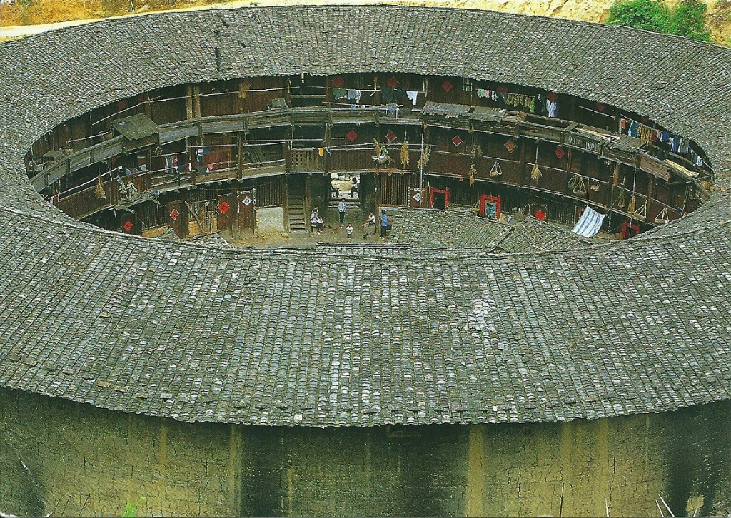 Fujian Tulou is a property of 46 buildings constructed between the 15th and 20th centuries over 120 km in south-west of Fujian province, inland from the Taiwan Strait. Set amongst rice, tea and tobacco fields the Tulou are earthen houses. Several storeys high, they are built along an inward-looking, circular or square floor plan as housing for up to 800 people each. They were built for defence purposes around a central open courtyard with only one entrance and windows to the outside only above the first floor. Housing a whole clan, the houses functioned as village units and were known as “a little kingdom for the family” or “bustling small city.” They feature tall fortified mud walls capped by tiled roofs with wide over-hanging eaves. The most elaborate structures date back to the 17th and 18th centuries. The buildings were divided vertically between families with each disposing of two or three rooms on each floor. In contrast with their plain exterior, the inside of the tulou were built for comfort and were often highly decorated. They are inscribed as exceptional examples of a building tradition and function exemplifying a particular type of communal living and defensive organization, and, in terms of their harmonious relationship with their environment, an outstanding example of human settlement.