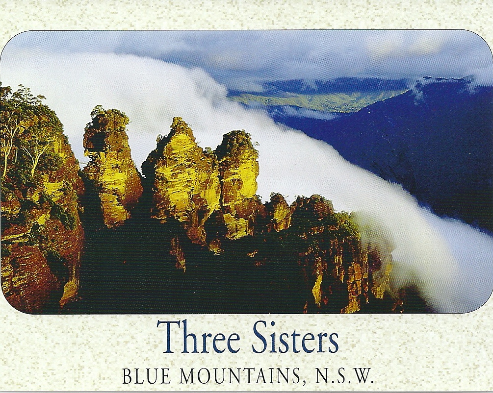The Three Sisters is a rock formation close to the town of Katoomba and one of the Blue Mountains most well-known sites. Their names are Meehni (922 m.), Wimlah (918 m.) and Gunnedoo (906 m.). Leyend says that the three sisters lived in the valley as members of the Katoomba tribe. They fell in love with three men from a neighbouring tribe but marriage was forbidden. The brothers were not happy to accept this and decided to capture the sisters. A battle followed and the sisters were turned to stone by an elder to protect them but he was killed in the fighting and no one could turn them back.