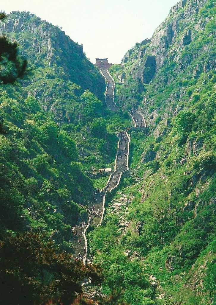 To reach the top of Mount Tai, one should climb a trail of 18 laps and 1 kilometer length
