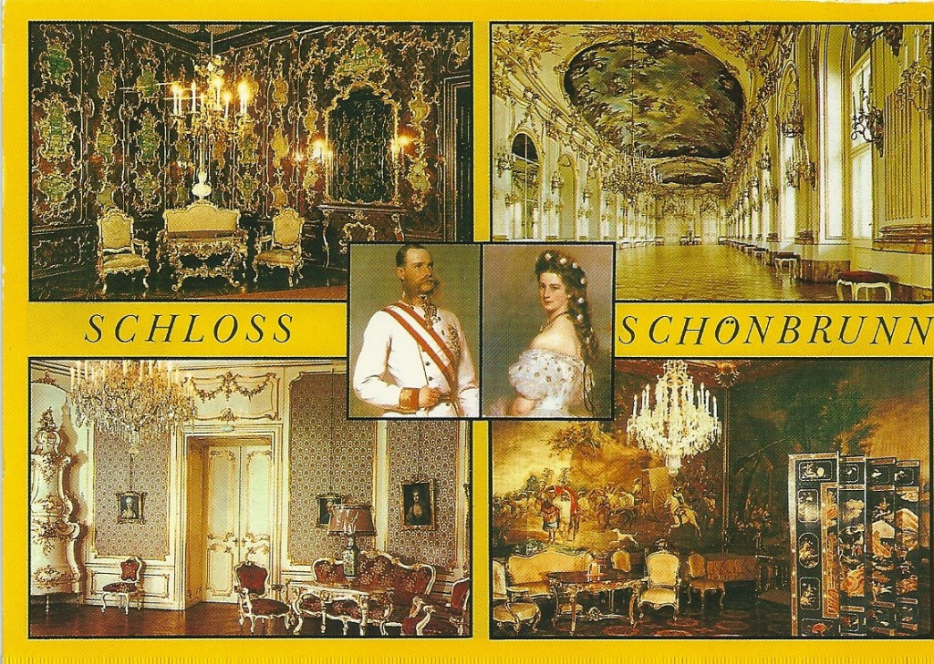 The Schönbrunn palace from the ouside and a portrait of Empress Sisi (Franz Xaver Winterhalter, 1865)