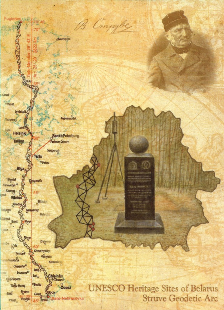 The Struve Arc is a chain of survey triangulations stretching from Hammerfest in Norway to the Black Sea, through 10 countries and over 2,820 km. These are points of a survey, carried out between 1816 and 1855 by the astronomer Friedrich Georg Wilhelm Struve, which represented the first accurate measuring of a long segment of a meridian. This helped to establish the exact size and shape of the planet and marked an important step in the development of earth sciences and topographic mapping. It is an extraordinary example of scientific collaboration among scientists from different countries, and of collaboration between monarchs for a scientific cause. The original arc consisted of 258 main triangles with 265 main station points. The listed site includes 34 of the original station points, with different markings, i.e. a drilled hole in rock, iron cross, cairns, or built obelisks.